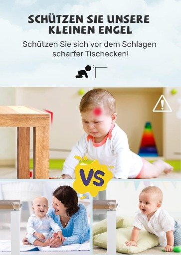 - Uniwersalność: przezroczyste osłony narożników stołu nadają się do większości powierzchni, takich jak drewno, tworzywo sztuczne, szkło i metal.