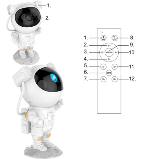 PROJEKTOR GWIAZD ASTRONAUTA LAMPKA NOCNA RZUTNIK Z PILOTEM