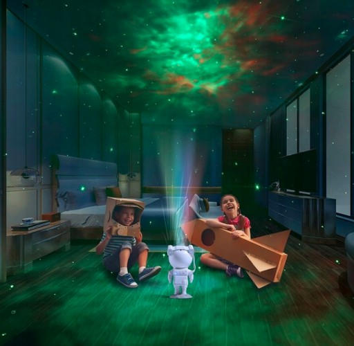 Ten projektor przeniesie Twój pokój w kosmiczną przestrzeń! Obsługa jest niesamowicie łatwa. Wystarczy podłączyć go do zasilania, a potem dostosować kolor mgławic i jasność gwiazd przy użyciu intuicyjnego panelu sterowania. Astronauta to nowoczesna technologia wzbogacona o niezwykły element dekoracyjny dla pokoju Twojego dziecka.