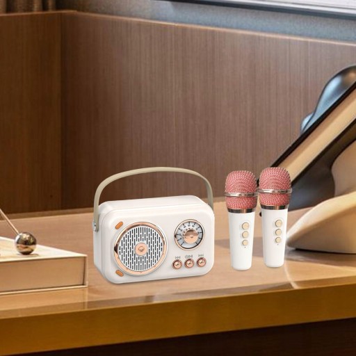 Cecha: Mini maszyna do karaoke charakteryzuje się doskonałym wykonaniem, wykwintnymi detalami i miękkim kolorem, pełnozakresowym głośnikiem 48 mm, bardzo przywraca realizm dźwięku, stabilne połączenie i transmisję oraz jakość dźwięku stereo.