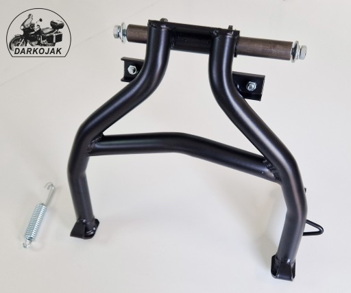 Większość tych motocykli fabrycznie posiada tylko stopkę boczną. Jednak przy wszelkich pracach serwisowych a szczególnie w trasie stopka centralna jest niezbędna. Stopka wykonana jest z giętych na specjalnej maszynie CNC rur. Posiada wzmocnienia z blachy cięte laserowo. Posiada specjalny odbojnik z tworzywa dzięki czemu bardzo łagodnie się składa - nie uderza. Poniżej zdjęcia jak to wygląda.