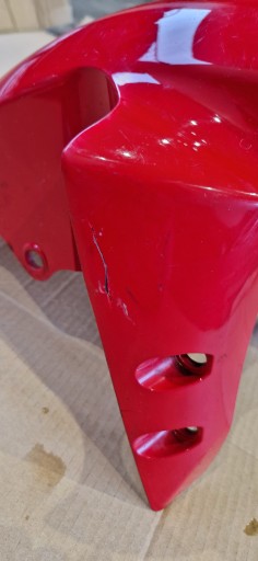 Błotnik posiada pęknięcie i 2 uszkodzenia na lakierze. Stan widoczny na foto.