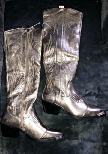 Złote kowbojki, haftowane. Zapinane na zamek. Z~ przodu metalowe okucie.