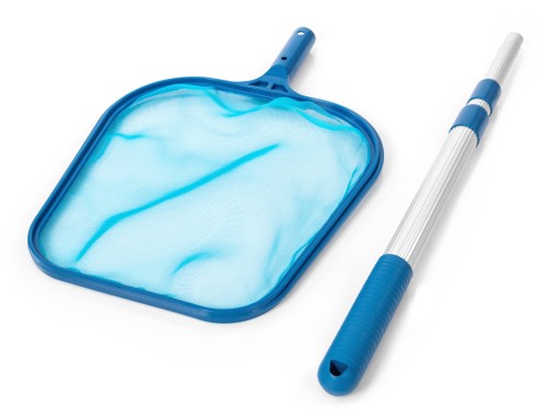 siatka do zbierania zanieczyszczeń z powierzchni wody basenu kąpielowego z drążkiem teleskopowym 121 cm