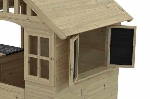 Ten uroczy przestronny drewniany domek dla dzieci stanie się ulubionym miejscem do zabawy i spędzania czasu na świeżym powietrzu. Domek został wykonany z naturalnego, certyfikowanego drewna FSC, co nadaje mu rustykalny i przytulny wygląd. Domek jest przestronny, wygodny a liczne okna zapewniają dużą ilość światła wewnątrz.