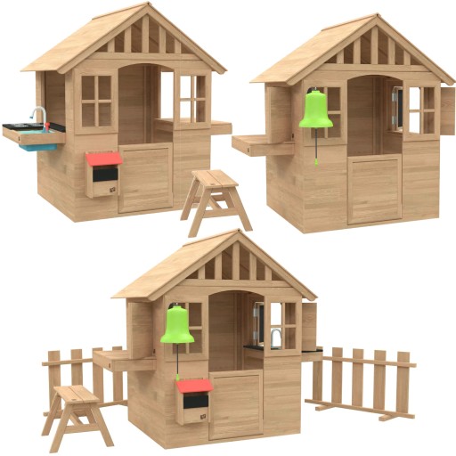 - Łatwy montaż domku oraz akcesoriów. Zestaw zawiera wszystkie elementy niezbędne do montażu