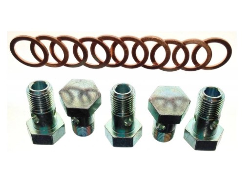 ŚRUBA PRZELEWOWA, ŚRUBA PALIWOWA M8x1, 5 SZTUK = ZESTAW + 10 PODKŁADEK 8x12x1