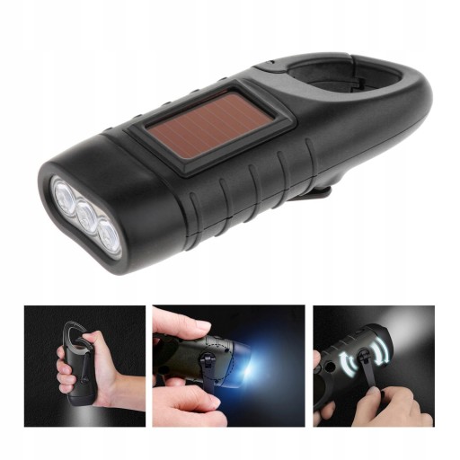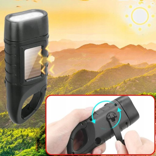 - LATARKA 3 LED DYNAMO RĘCZNA KORBKĘ SŁONECZNA LAMPA 2W1 -