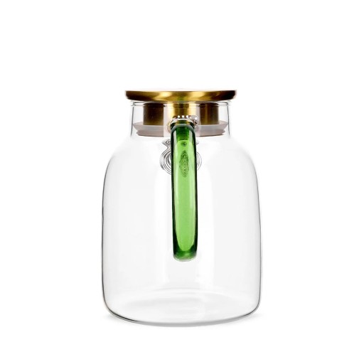 Dzbanek KUBBE wyróżnia się prostym kształtem połączonym z kontrastującymi detalami w mocnych kolorach. Wykorzystane do jego wyrobu szkło ma transparentną barwę, dzięki czemu bez trudu dopasujesz naczynie do aranżacji każdego stołu. Wygodny uchwyt utrzymany jest w oryginalnym, zielonym odcieniu, który ożywia minimalistyczne wzornictwo. Stalowa pokrywka podkreśla natomiast elegancki charakter dzbanka - ma bowiem królewski odcień złota. Dzbanek KUBBE ma pojemność 1,8 l.