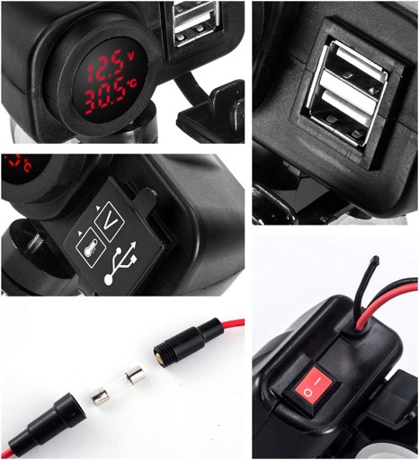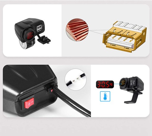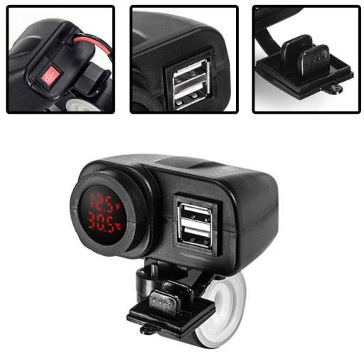 - Nazwa: zmodyfikowana ładowarka motocyklowa z cyfrowym wyświetlaczem temperatury napięcia bezpiecznika z podwójnym portem USB