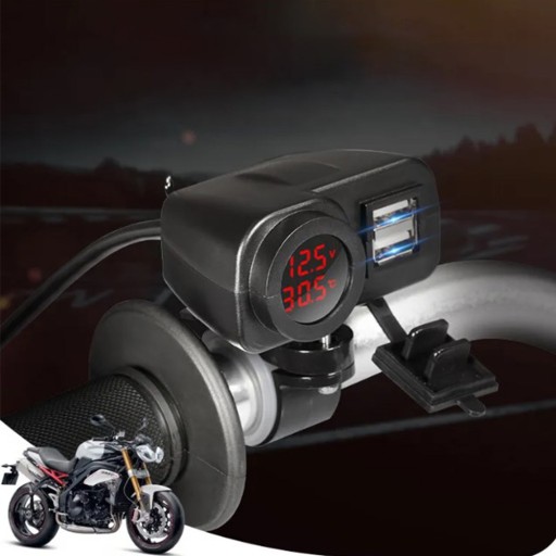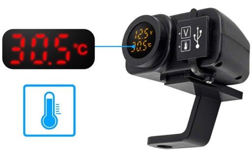 ЗАРЯДНОЕ УСТРОЙСТВО ДЛЯ МОТОЦИКЛА 2x USB ВОЛЬТМЕТР ТЕРМОМЕТР