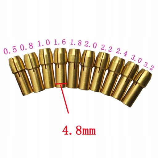 10 Sztuk Tulei Zaciskowych Wiertarskich 0,5-3,2 Mm Chwyt 4,8 Mm Do Narzędzia Obrotowego