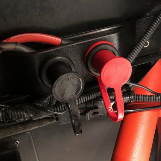 3. Nasadka ochronna: Zdalny zacisk akumulatora jest wyposażony w zakładkę zabezpieczającą pomiędzy zaciskami, która zapobiega stykaniu się zacisków kablowych, a także ma wbudowane zaślepki zakrywające zaciski, gdy nie jest używane.