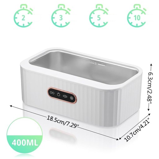 ⌚️ 4 tryby czyszczenia: Mini ultradźwiękowe urządzenie czyszczące jest podzielone na tryb czyszczenia początkowego, głębokiego i intensywnego – inteligentny czas (2 minuty, 3 minuty, 5 minut, 10 minut). Określa to odpowiedni czas czyszczenia dla różnych przedmiotów. Aby poprawić efekt czyszczenia, przed czyszczeniem można namoczyć przedmiot na kilka minut i dodać odrobinę detergentu