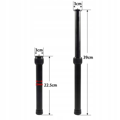 Dolny otwór gwintowany 3/8 cala: z gwintem 3/8 cala na dole, tyczka przedłużająca może być zamontowana na statywie/suwaku.