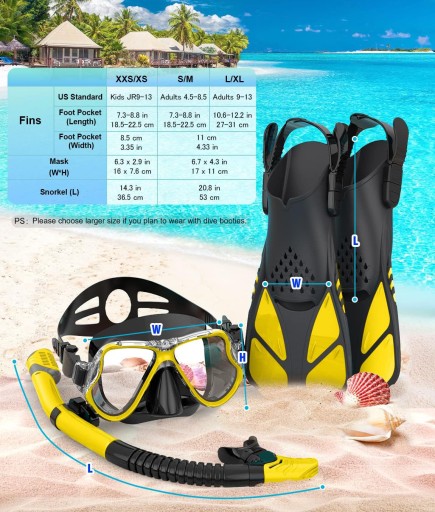 5SZT PROFESJONALNY ZESTAW SPRZĘTU DO NURKOWANIA DLA DOROSŁYCH ŻÓŁTY