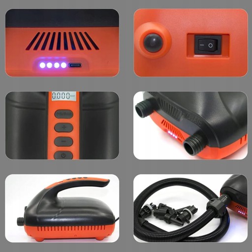 - Elektryczna przenośna pompka do paddleboardów jest wyposażona w inteligentny wyświetlacz cyfrowy, który umożliwia ustawienie żądanego ciśnienia docelowego i monitorowanie ciśnienia w czasie rzeczywistym.