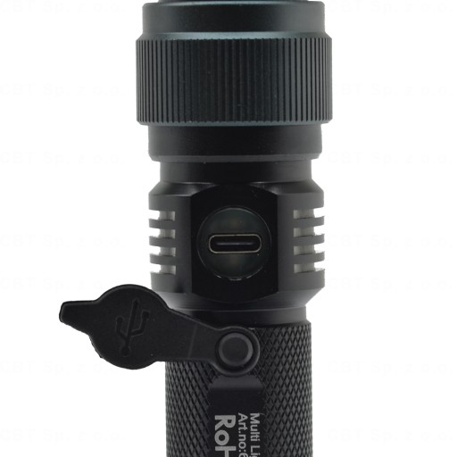 ✅ Latarkę można ładować poprzez dołączony w zestawie kabel USB typu C. Podczas ładowania złączę pali się na czerwono.
