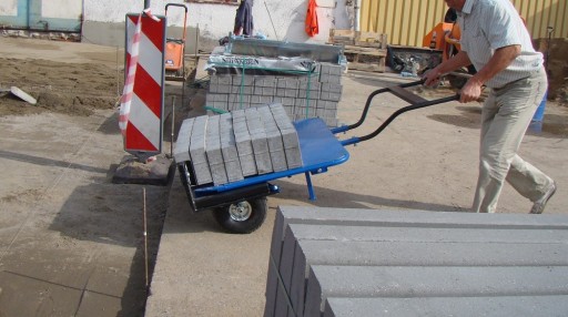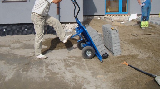 Dzięki zastosowaniu wózka brukarskiego, ręczny transport kostki może być wyjątkowo szybki i łatwy. Jest on przeznaczony do przewożenia całych warstw kostki z palety do miejsca pracy.
