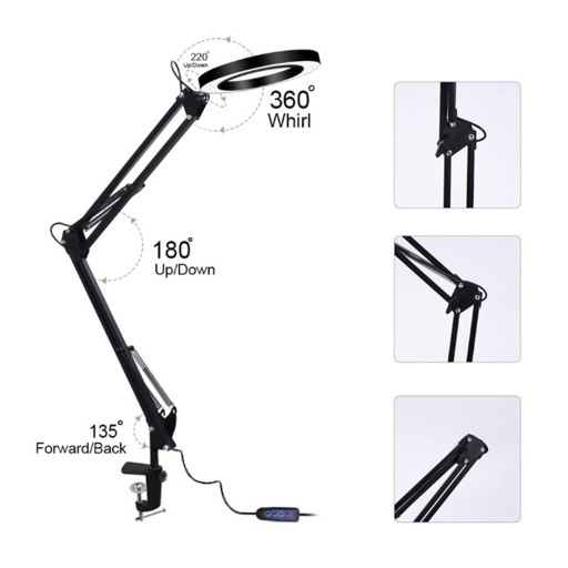 Lampa z 3 trybami kolorów i 5-krotnym szkłem powiększającym Biurko z