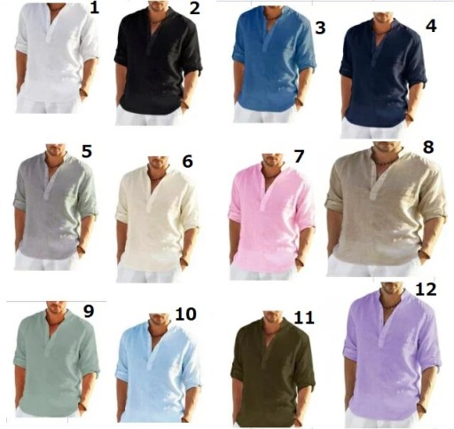 Męska bluzka Top lniane koszule z długim rękawem Solidna, luźna koszula na co dzień Plus Size Kod producenta Koszula Lniana Przewiewna Casual Len