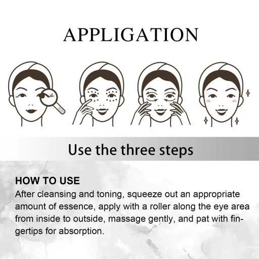 ●After cleansing and toning, squeeze out an appropriate amount of essence, apply with a roller along the eye area from inside to outside, massage gently, and pat with finger tips for absorption.