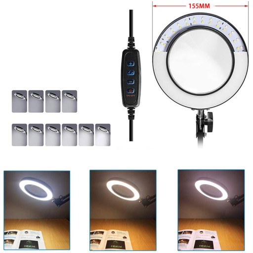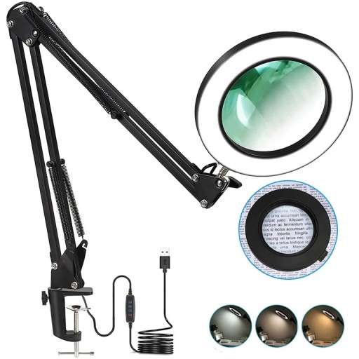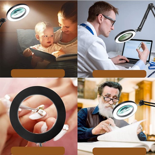 3 tryby oświetlenia: ta lampa LED z lupą ma 64 koraliki LED o wysokiej jasności, 3 temperatury kolorów: ciepłe światło, ciepłe białe światło i białe światło. Każdy tryb oświetlenia ma 10 poziomów ściemniania jasności. Kolor światła lub jasność można łatwo zmienić za pośrednictwem sterownika.