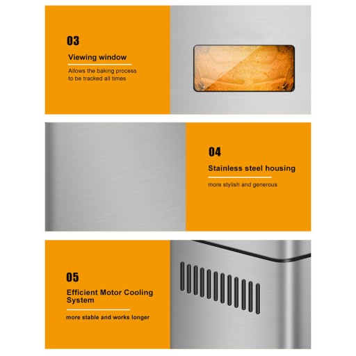★ 【Gładki projekt ze stali nierdzewnej zdrowego i świeżo pieczonego chleba w domu】Uroczy elegancki design ze stali nierdzewnej i pokrywa ze szkła hartowanego idealnie miesza się z dekoracją kuchni. Domowy chleb jest nie tylko pyszny, ale także zdrowszy (świeże i mniej chemikaliów).