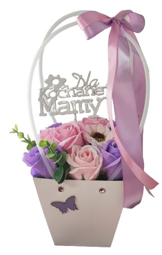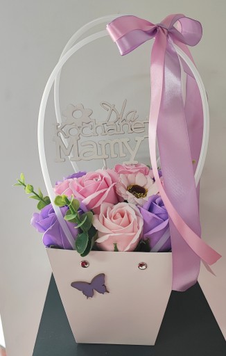 Torebka box z pachnącymi różami z mydła nadającymi się do kąpieli. Róże ładnie pachną i ślicznie wyglądają....Nie więdną jak prawdziwe kwiaty. Długo będą cieszyć oczy osoby obdarowanej...