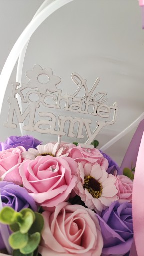Koszy dostępny w zestawie pikiem w kształcie serduszka z napisem "Dla mamy"