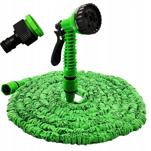 WĄŻ OGRODOWY 30m ROZCIĄGLIWY ROZCIĄGANY ELASTYCZNY + ZŁĄCZKI + PISTOLET