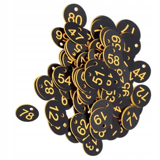 100x Protable Numer Tagu Numer 1-100 Dla Kluczy Akademika Magazynu Hotelowego Czarny żółte Słowo!