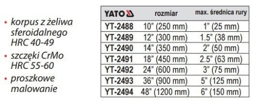 YATO YT-2488 KLUCZ DO RUR CrMo 1CAL 250MM