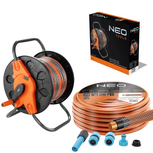 НЕО САДОВЫЙ ШЛАНГ, 4-СЛОЙНЫЙ, 20 БАР 1/2" 30М, ОПРЫСКИВАНИЕ, ТЕЛЕЖКА, БАРАБАН, ПОДСТАВКА