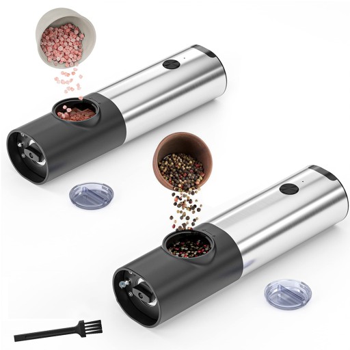 - -Obsługa jedną ręką: włóż do pojemnika pieprz lub sól, naciśnij i przytrzymaj przycisk, wtedy możesz już po prostu sprawnie mielić, a drugą ręką możesz mieszać potrawę solą lub pieprzem.