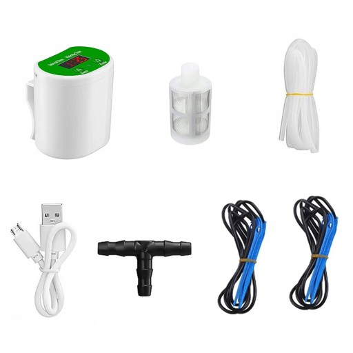 - Akumulator 2000 mAh tego urządzenia do podlewania roślin (jedno pełne naładowanie) zapewnia do 60 dni automatycznego kapania, ale zależy to również od zaopatrzenia w wodę, im większe zaopatrzenie w wodę, tym większe zużycie energii
