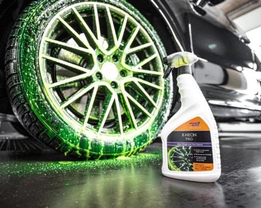 X-Neon Pro to bezkwasowy preparat do szybkiego i skutecznego czyszczenia felg i opon. Usuwa silne zabrudzenia, pył hamulcowy i inne zanieczyszczenia, pozostawiając felgi lśniące. Specjalna formuła penetruje szczeliny opon, usuwając nawet trudne zabrudzenia. Odtłuszcza powierzchnię opony, przygotowując ją do aplikacji dressingu lub powłoki. Bezpieczny dla felg stalowych i aluminiowych, zawiera inhibitory korozji. Idealny do szybkiego mycia kół bez ryzyka zarysowań, można nakładać przy użyciu pianownicy.