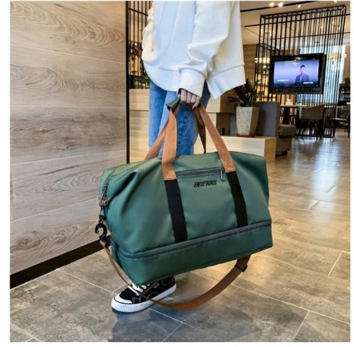 Torba posiada dodatkową przegrodę na dole z zamkiem, np na oddzielenie mokrych lub brudnych rzeczy, lub schowanie butów.