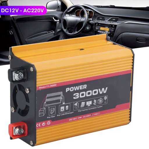 1. Falownik 3000 W, falownik samochodowy z 2 portami USB i gniazdkiem sieciowym, moc udarowa do 3000 W, falownik ma stabilną wydajność i dobrą wydajność pracy.