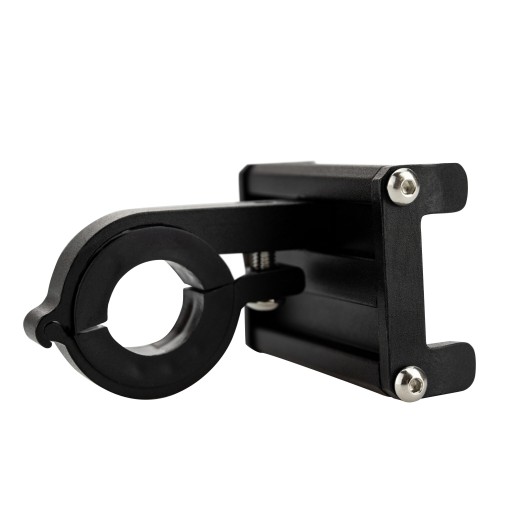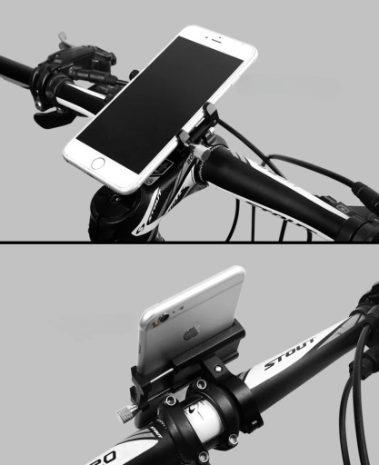 Uniwersalny uchwyt aluminiowy na kierownicę pasuje do większości modeli telefonów o szerokości 50-100 mm. Uchwyt montowany jest do kierownicy przy pomocy solidnej obręczy, dokręcanej śrubą. Sprawdzi się dzięki temu zarówno w rowerach, jak i motocyklach. Wysoka jakość materiałów sprawia, że urządzenie jest bezpieczne nawet na najbardziej wyboistej drodze.