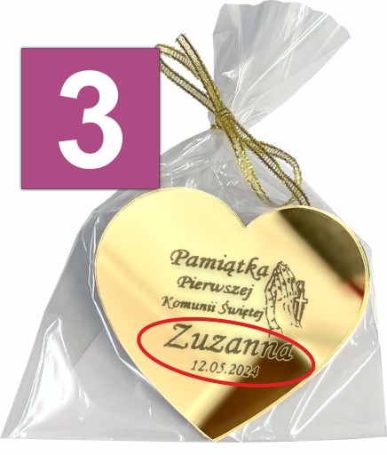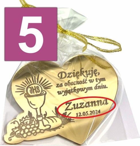 Podziękowanie dla Gości złoty magnes z dedykacją - idealny prezent na pamiątkę Pierwszej Komunii Świętej