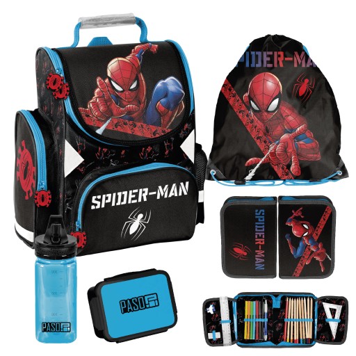 ШКОЛЬНЫЙ НАБОР PASO «ЧЕЛОВЕК-ПАУК», ШКОЛЬНЫЙ МЕШОК, Пенал, бутылка с водой, коробка для завтрака