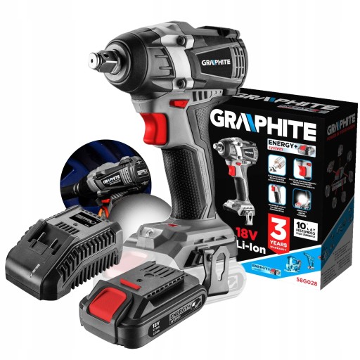 Wygodny system bateryjny do urządzeń akumulatorowych. Dedykowane akumulatory do elektronarzędzi marki GRAPHITE, oferowane są w szerokim zakresie pojemności. System Energy+ umożliwia komfortowe korzystanie z wielu urządzeń, bez obawy o ciągnące się kable czy poszukiwanie źródeł lokalnego zasilania. Klucz udarowy w zestawie bez akumulatora.
