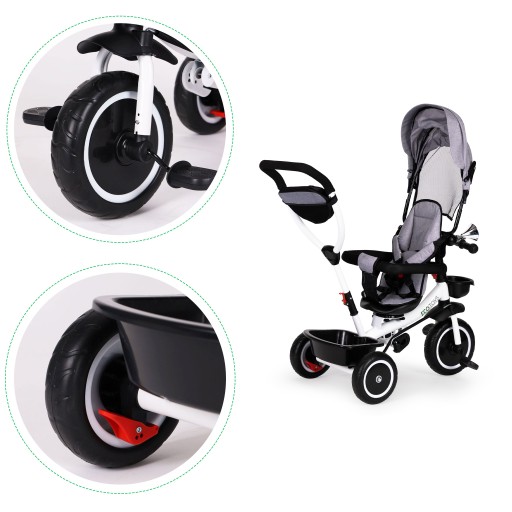 Трехколесный велосипед, коляска, серое поворотное сиденье, с козырьком