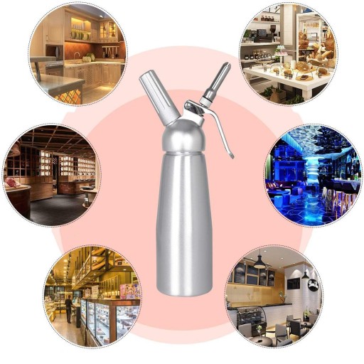 🔔🔔W skrócie: otrzymasz syfon do śmietany o maks. Pojemność 500 ml, 3 końcówki do dekoracji ze stali nierdzewnej,1 szczotka do czyszczenia, 1 zakrętka gazu, 1 Instrukcja obsługi w języku chińskim i angielskim, 1 Kolorowe pudełko.