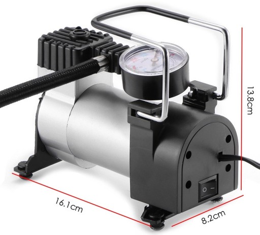Do zestawu dołączono - oprócz standardowego samochodowego - 3 różnego rodzaju końcówki . Na obudowie znajduje się manometr który pokazuje aktualne ciśnienie.