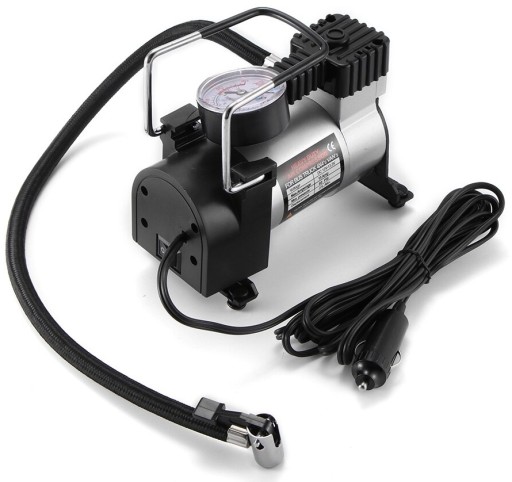 - Kompresor z przewodem, wtyczką do gniazda zapalniczki