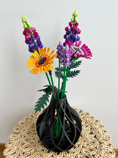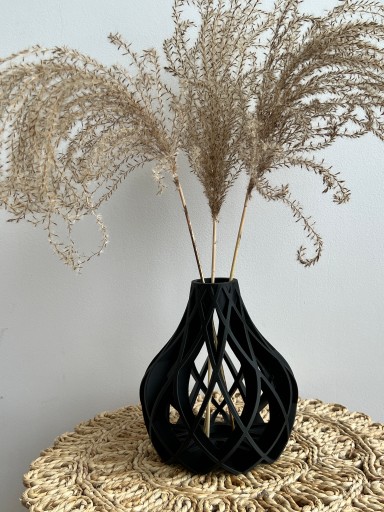 Ten wyjątkowy wazon został wydrukowany w technologii druku 3D. Ma lekką i bardzo ciekawą konstrukcję, a dzięki swojemu unikalnemu kształtowi idealnie prezentuje się sam jak i z kwiatami. Pięknie pasuje zarówno do kwiatów sztucznych jak i modnych suszonych traw. Jest też idealny do kwiatów LEGO, które zyskują ostatnio na popularności. Ale nawet pusty wygląda bardzo efektownie, stanowi designerski element dekoracyjny i będzie nietuzinkową ozdobą twojego wnętrza.
