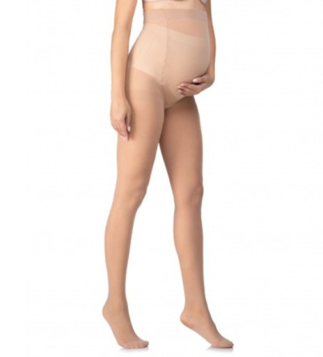 Dla kobiet w ciąży z półokrągłym klinem z przodu bez pionowego szwu i bez uciskową wysoko umieszczoną gumą dadzą Tobie i Twojemu dziecku komfort i elegancję w każdym dniu ciąży. Rajstopy półmatowe. Dzięki dużej zawartości włókien elastycznych idealnie modelują i przylegają do nogi.