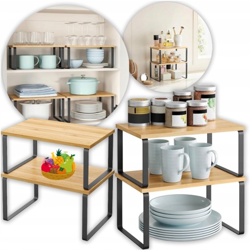 ➡️Zestaw oferuje 3 sposoby ułożenia półek - jedna na drugiej, rozdzielone lub w kształcie litery L, co pozwala dostosować je do różnych przestrzeni i maksymalizować wykorzystanie miejsca.
